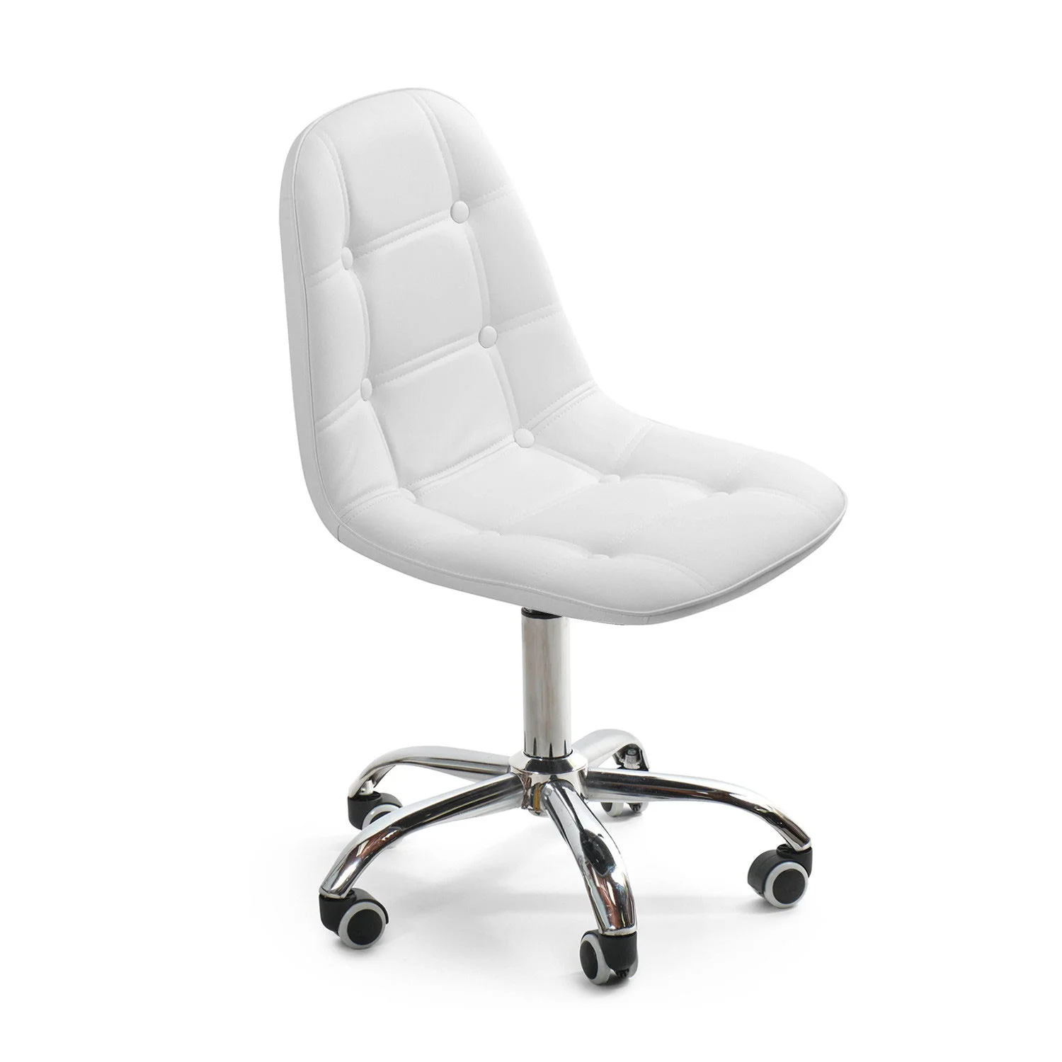 CHAISE DE BUREAU GREG CAPITONE BLANC AVEC ROUES