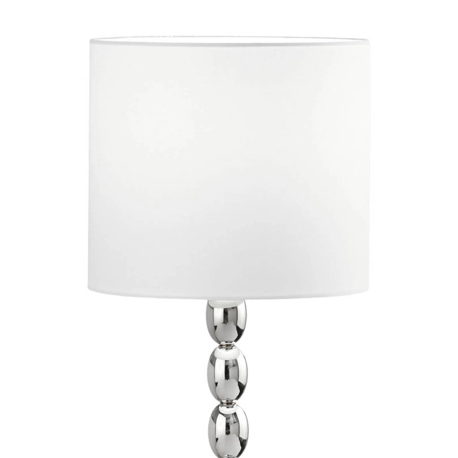 - Base métallique chromée avec abat-jour en tissu diffusant la lumière en douceur.