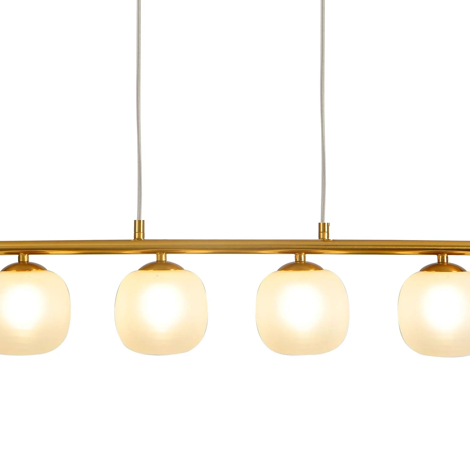 SUSPENSION 4 LUMIÈRES FER DORÉ ABAT-JOUR BLANC NICOLETTA