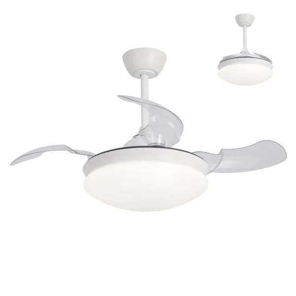 Le Ventilateur de Plafond LED 24W Réglable 4 Pales Rétractables Moteur DC Montreal est la solution idéale pour ceux qui recherchent une combinaison parfaite de style, d’efficacité et de fonctionnalité. Son design moderne avec pales rétractables en PC transparent et son corps en aluminium peint en blanc mat s’intègre parfaitement dans tout espace contemporain.