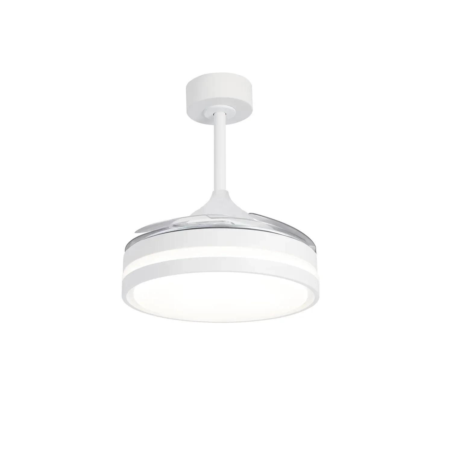 Le Triana allie design moderne et fonctionnalité avancée. Ses pales pliables optimisent l’espace lorsqu’elles ne sont pas utilisées. Le corps en aluminium blanc mat et le diffuseur en acrylique garantissent durabilité et style contemporain.