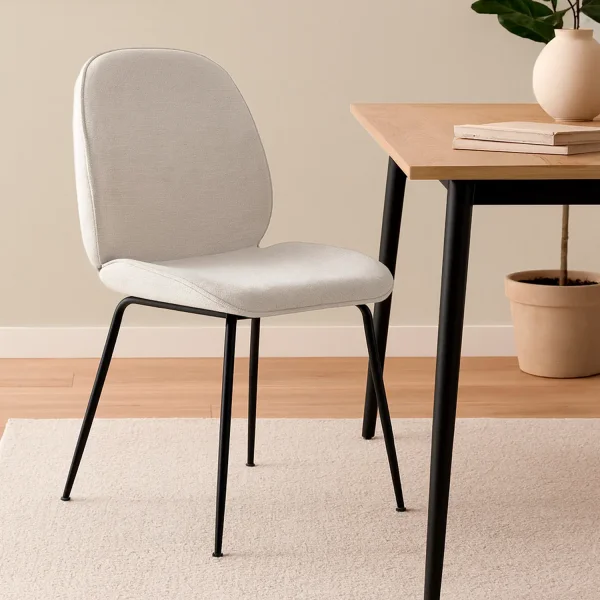 Cette chaise est parfaite pour ceux qui recherchent un siège qui s’intègre facilement dans tout type d’environnement sans renoncer à l’élégance. Son tissu résistant et sa structure métallique assurent longévité et solidité, tandis que son design neutre permet de l’associer à différents styles de mobilier.