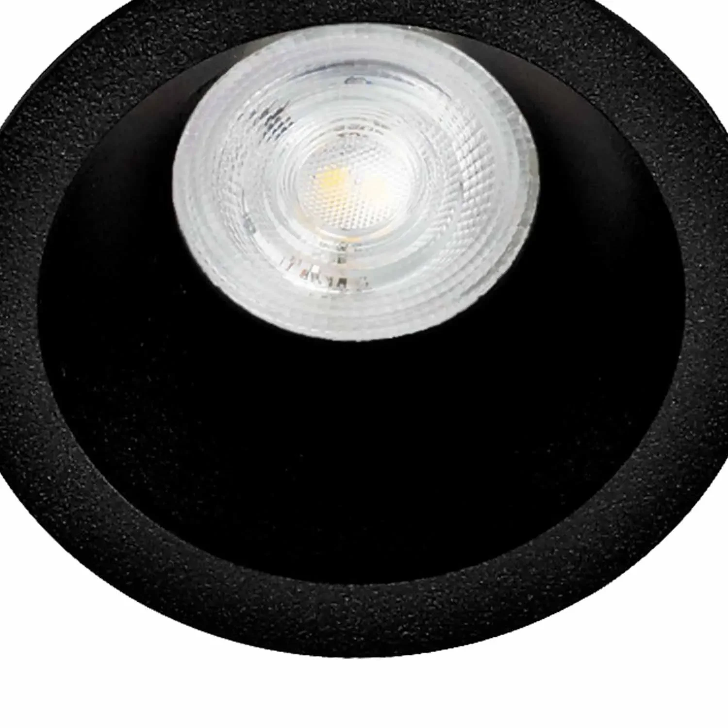 Le Spot Encastré Rond Profondeur Extra 3,5 cm en Aluminium Noir fonctionne avec une ampoule à culot GU10 (non incluse), idéal pour les installations au plafond dans les espaces intérieurs. Tension de 220V et indice de protection IP20.