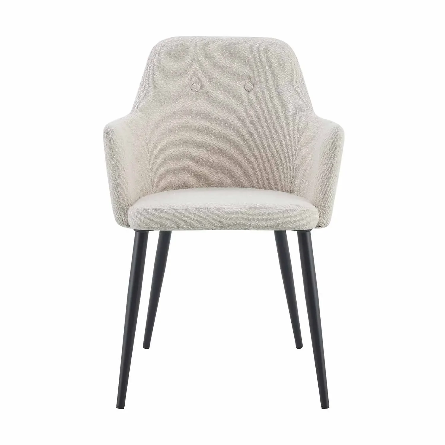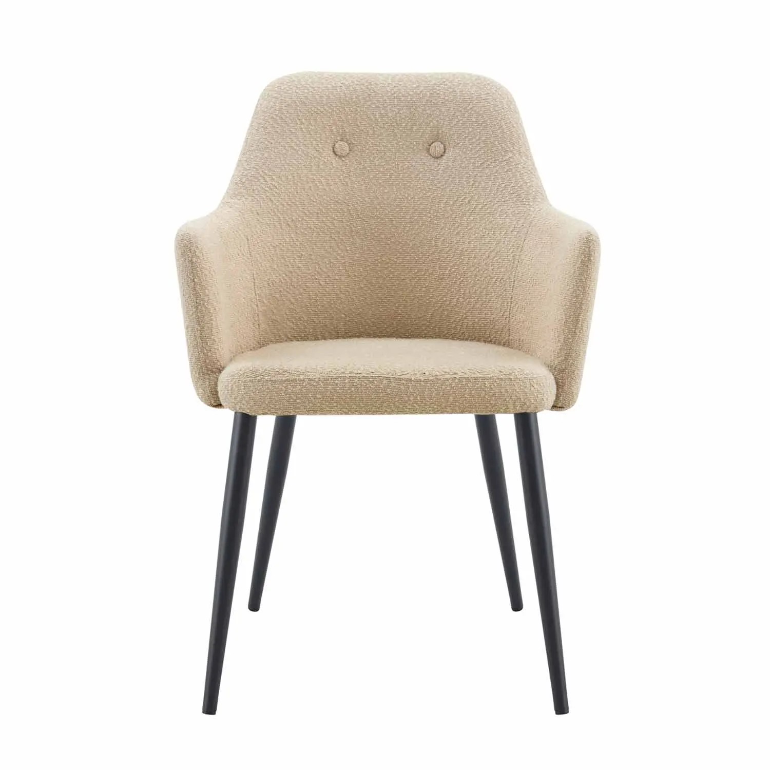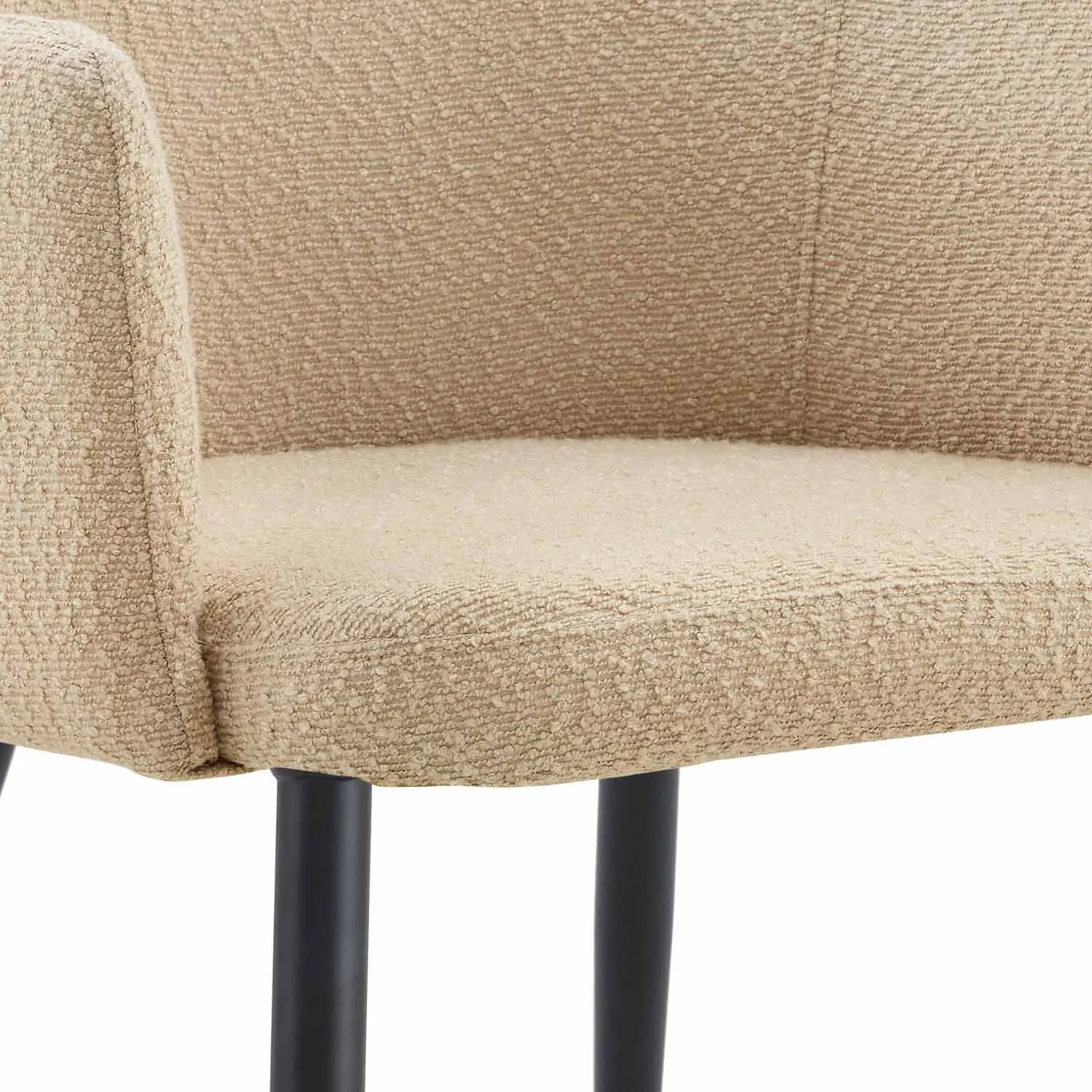 Son revêtement en couleur sable apporte neutralité et chaleur, lui permettant de s’adapter à différents styles de décoration. C’est l’option idéale aussi bien pour les pièces de vie quotidiennes que pour les espaces de détente. Grâce à son design ergonomique, il offre un soutien confortable favorisant une bonne posture. Les pieds métalliques noirs contrastent avec la teinte claire de l’assise, créant un équilibre visuel qui attire le regard dans tout salon, salle à manger ou bureau moderne.