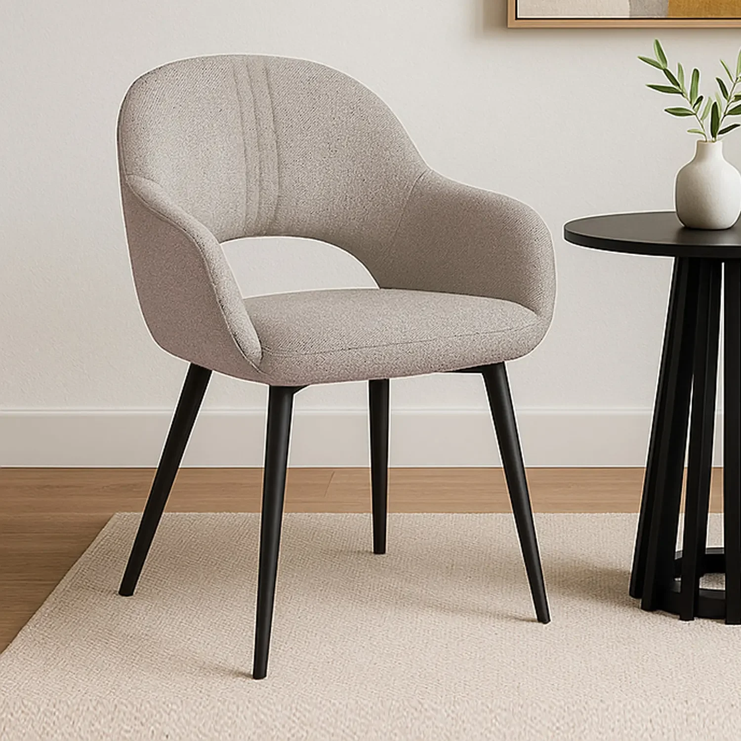 Cette chaise allie confort et esthétique minimaliste, parfaite pour les salles à manger, bureaux à domicile ou coins lecture. La couleur beige apporte chaleur et s’adapte à différentes palettes de décoration, tandis que le rembourrage intérieur garantit une assise confortable pendant des heures. Son design contemporain en fait une pièce à la fois fonctionnelle et décorative. La structure métallique noire assure durabilité et stabilité, tandis que l’intérieur en contreplaqué et mousse offre un soutien ergonomique pour préserver votre posture.