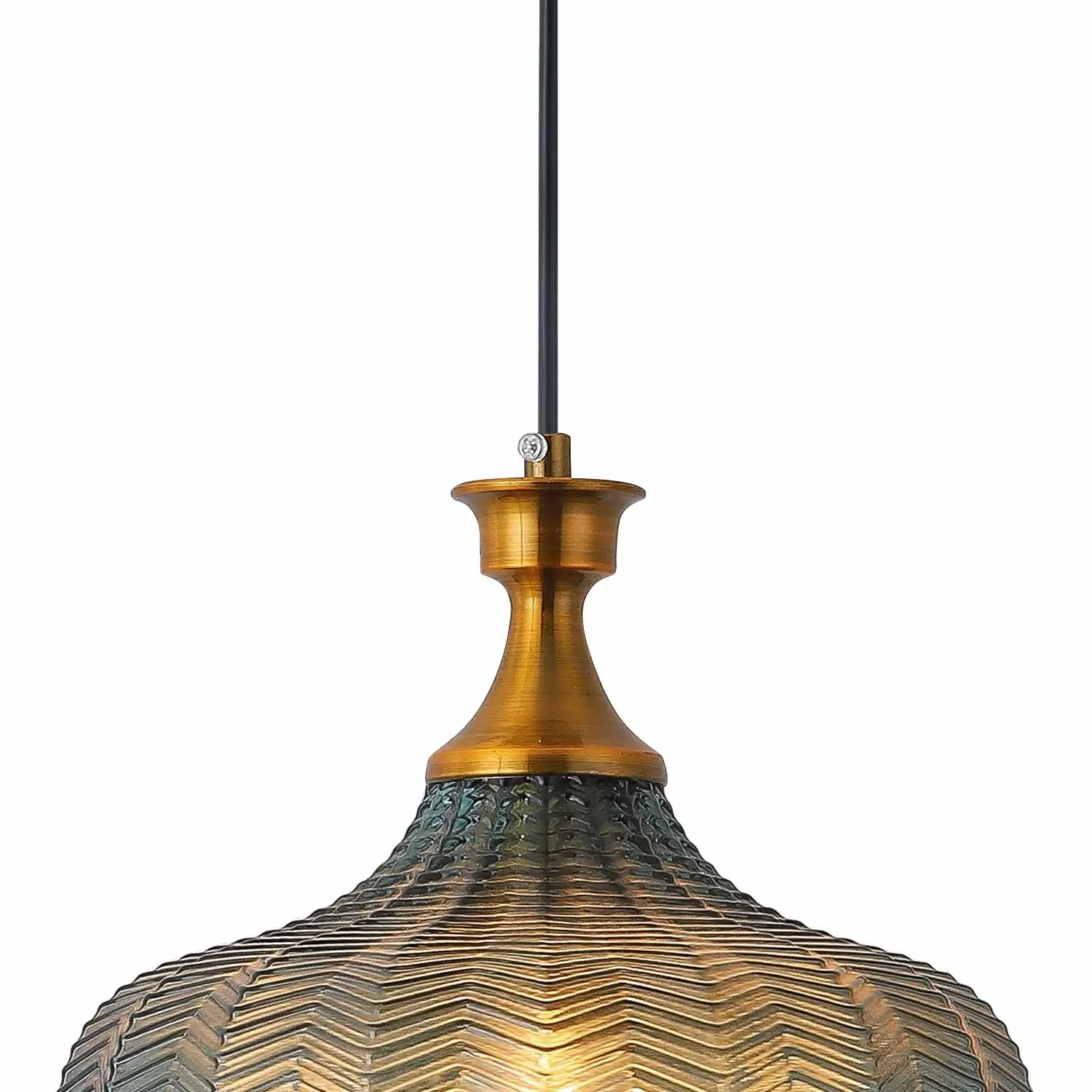 Son abat-jour en verre taillé d’un ton aigue-marine élégant diffuse des reflets uniques au contact de la lumière, tandis que la finition dorée de sa structure apporte une touche luxueuse et raffinée. Grâce à son design soigné, cette suspension est idéale pour salons, salles à manger ou chambres, s’intégrant aussi bien dans des espaces modernes que classiques. Sa taille moyenne la rend adaptée comme luminaire principal dans de petites pièces ou comme élément complémentaire dans des compositions multiples.
