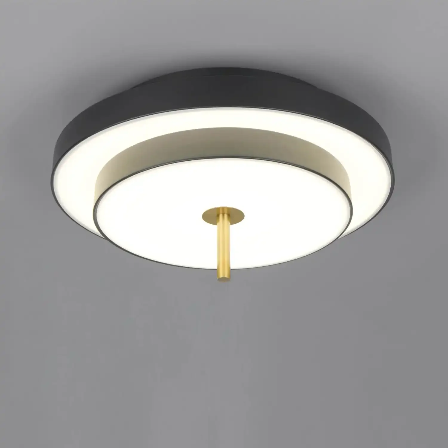 Découvrez le Plafonnier LED Elix Noir et Or 34,5W, une pièce moderne qui allie design sophistiqué et fonctionnalité avancée pour illuminer vos espaces avec élégance.