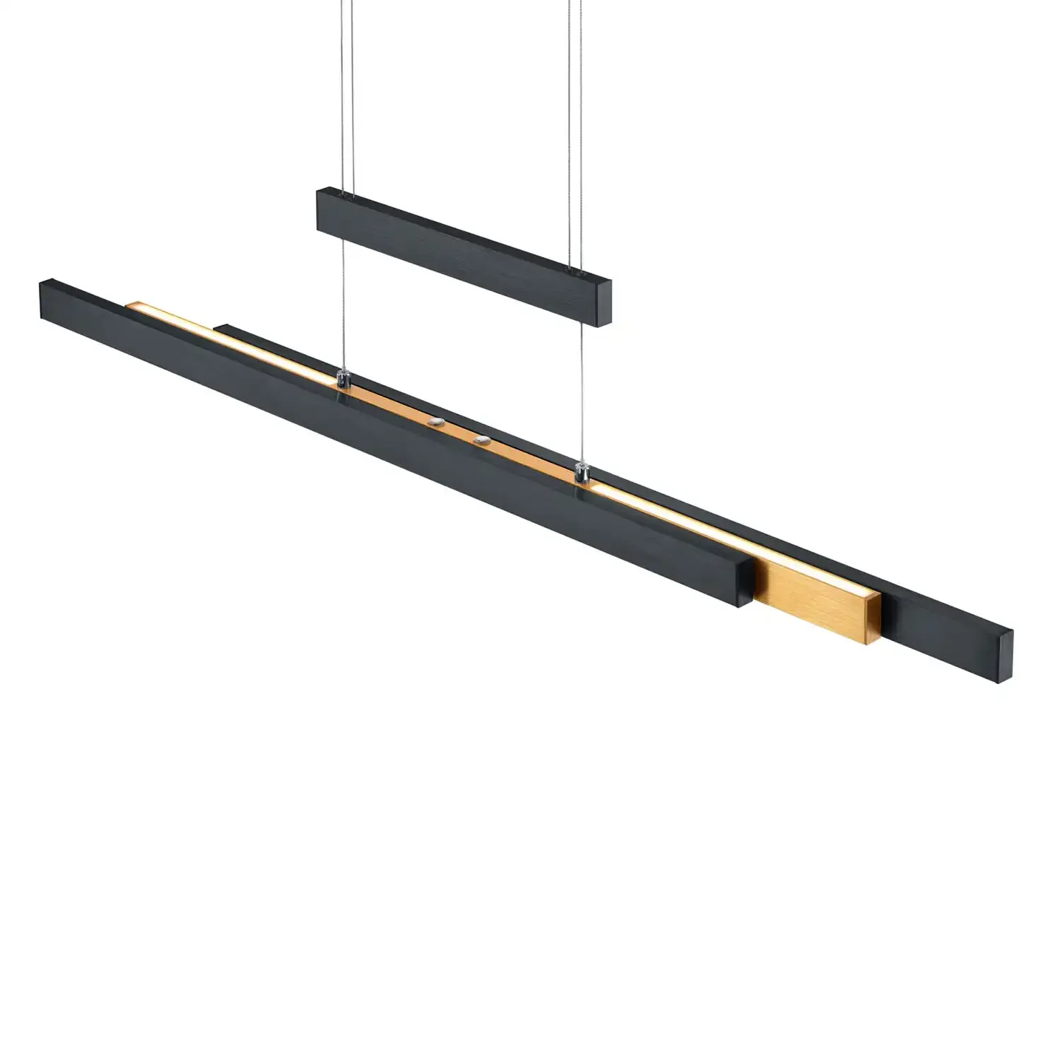 La Suspension LED Lunor Noir 45 W 2700K-5000K combine design élégant, technologie avancée et polyvalence maximale, idéal pour les espaces contemporains nécessitant un éclairage réglable et personnalisé. Sa finition noire avec détails dorés apporte une touche sophistiquée et moderne.