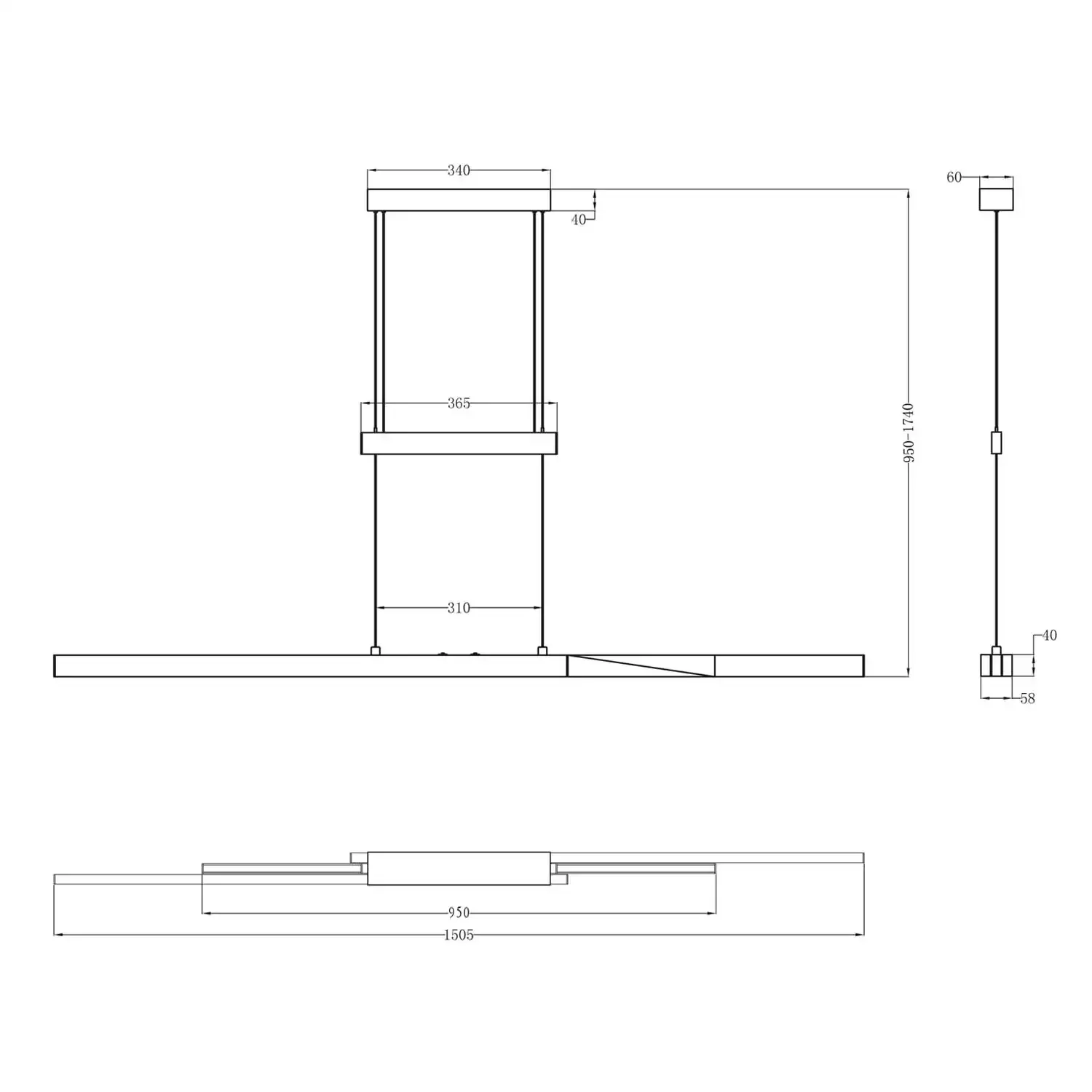 Installez-le au plafond grâce au système extensible inclus. Ajustez la hauteur (95–150 cm) et réglez intensité et température de couleur avec la fonction tactile à 4 niveaux. La lumière bidirectionnelle éclaire uniformément le haut et le bas, parfaite pour salons, salles à manger ou bureaux.