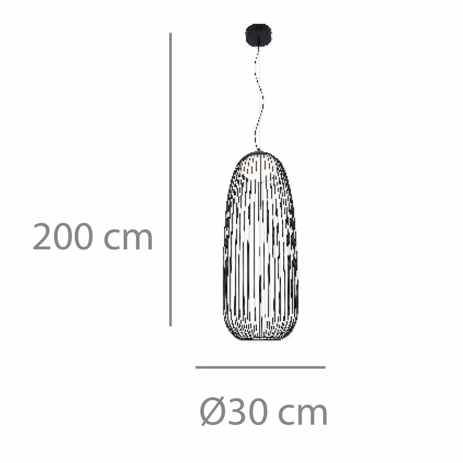 - Hauteur : 200 cm (longueur de suspension)
