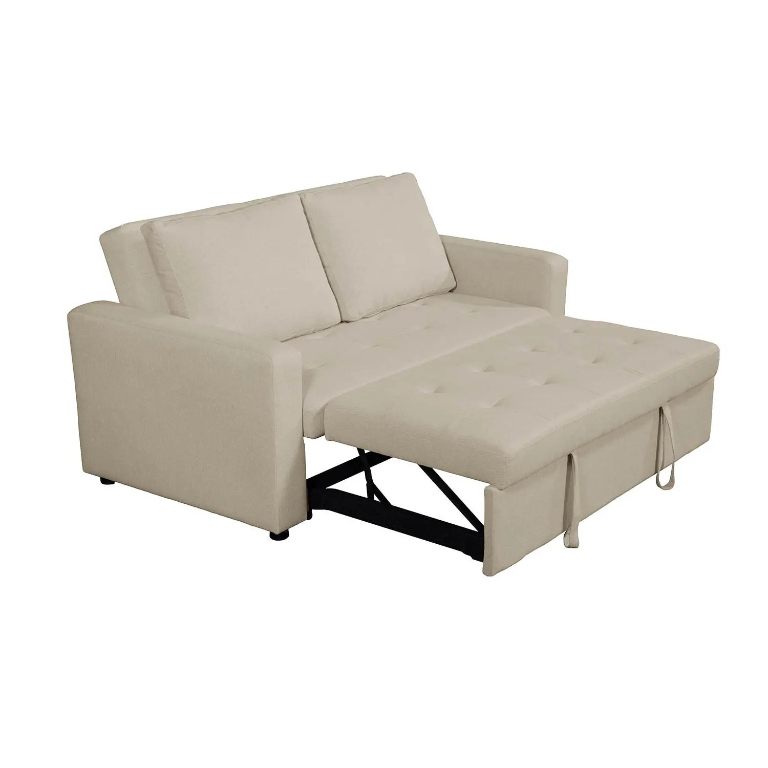 La structure en contreplaqué garantit solidité et durabilité, et les pieds métalliques noirs assurent une stabilité optimale. Ses dimensions polyvalentes permettent de l’adapter à tous les espaces, faisant du canapé un meuble pratique le jour et un lit confortable la nuit.
